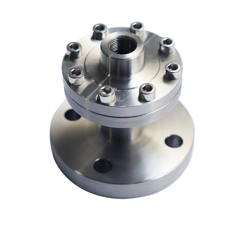 下面為隔離器部分,隔離器有多種接口形式,滿足不同工藝連接的需要;同時隔離膜片有多種材質,滿足不同腐蝕性介質的壓力測量。