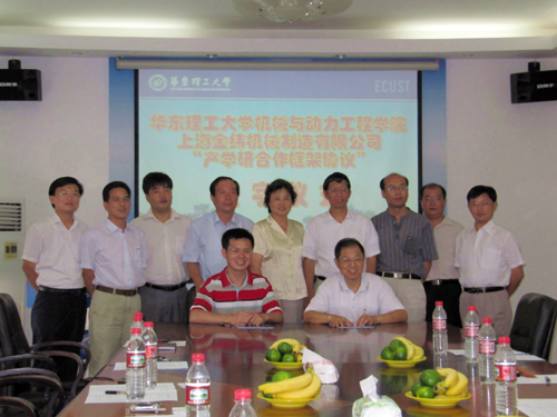 2009年8月28日下午,上海金緯機(jī)械制造有限公司與上海華東理工大學(xué)建立“產(chǎn)學(xué)研”戰(zhàn)略聯(lián)盟合作會(huì)議在上海召開。雙方將發(fā)揮各自的優(yōu)勢(shì),通過科研項(xiàng)目、攻關(guān)課題、新產(chǎn)品開發(fā)和人才培訓(xùn)等方面,在相互支持與發(fā)展中,構(gòu)建以市場(chǎng)為導(dǎo)向、產(chǎn)學(xué)研結(jié)合的科技創(chuàng)新合作體系。