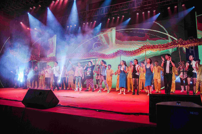 ***后晚會在一曲大合唱《***炫民族風》的旋律中落下帷幕。整臺晚會激揚著青春的活力,洋溢著蓬勃的朝氣,使兩千多名觀眾飽享了一頓精神大餐,大家***后依然熱情不減、意猶未盡。