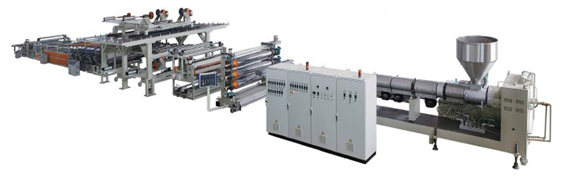 結合傳統的生產工藝和實踐經驗,開發的高速鋁塑板生產線,采用先進的擠出系統,可以生產高填充的阻燃級鋁塑板,產量1800kg/h,生產線速度10m/min,可生產寬度900-1560mm,鋁箔厚度0.18mm以上的產品。
