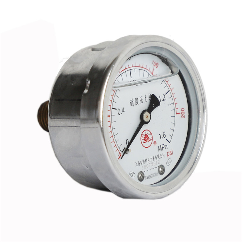 耐震壓力表是在普通壓力表的基礎上,表殼為全密閉型結構,內部填充阻尼液(一般為甘油或者硅油)并加裝緩沖機構,減輕環境劇烈振動及介質脈沖對儀表示值的影響,耐震型壓力表指示穩定清晰。廣泛應用于液壓機械、石油、化工、冶金、礦山機械、電力設備等部門,測量對銅和銅合金無腐蝕性介質的壓力。使用壽命長,是普通壓力表的替代產品,防護等級IP65。